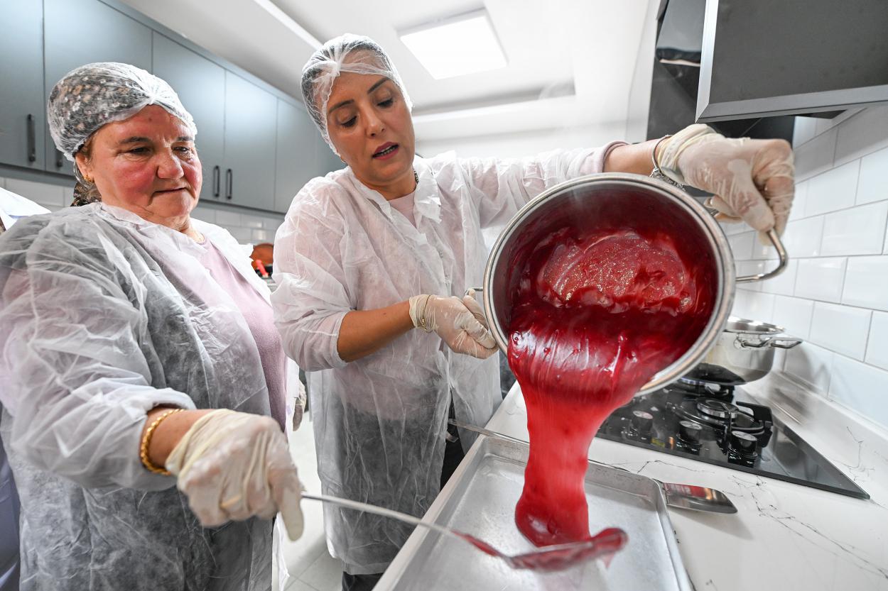Mersin Büyükşehir Belediyesi ‘Hamzabeyli Köyümüz Atölye Yerleşkesi’nde, coğrafi işaret tescilli Mersin Kan Portakalı ile geleneksel bir lezzet olan Türk lokumu buluşturuldu ve kadın emeği ile enfes bir tat sunuldu.