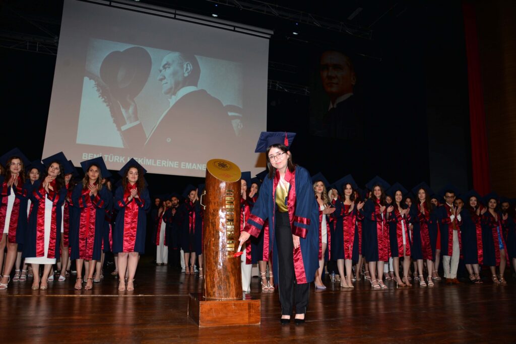 Konuşmaların ardından mezunlara sembolik son ders ve hekimlik andını yaptırmak için Tıp Fakültesi Tıp Tarihi ve Etik Anabilim Dalı Başkanı Doç. Dr. Oya Ögenler sahneye davet edildi ve mezunlar yeminleri etti.